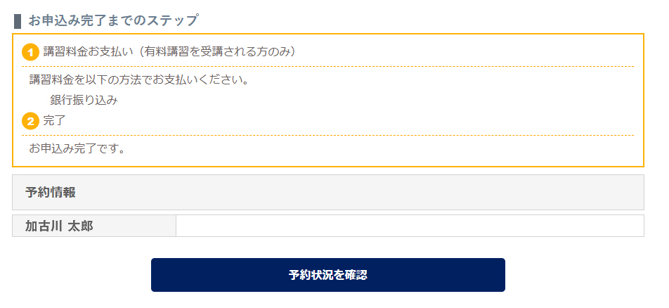 この時点で、受講枠が確保されます。