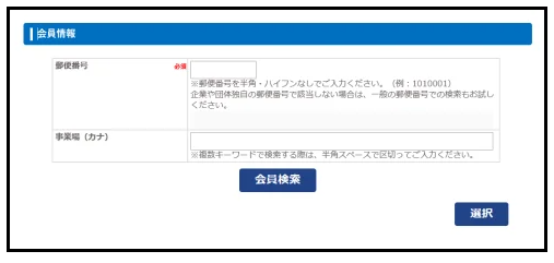 | ※ | 「会員検索」から事業場登録されない場合は会員価格が適用されません。 |